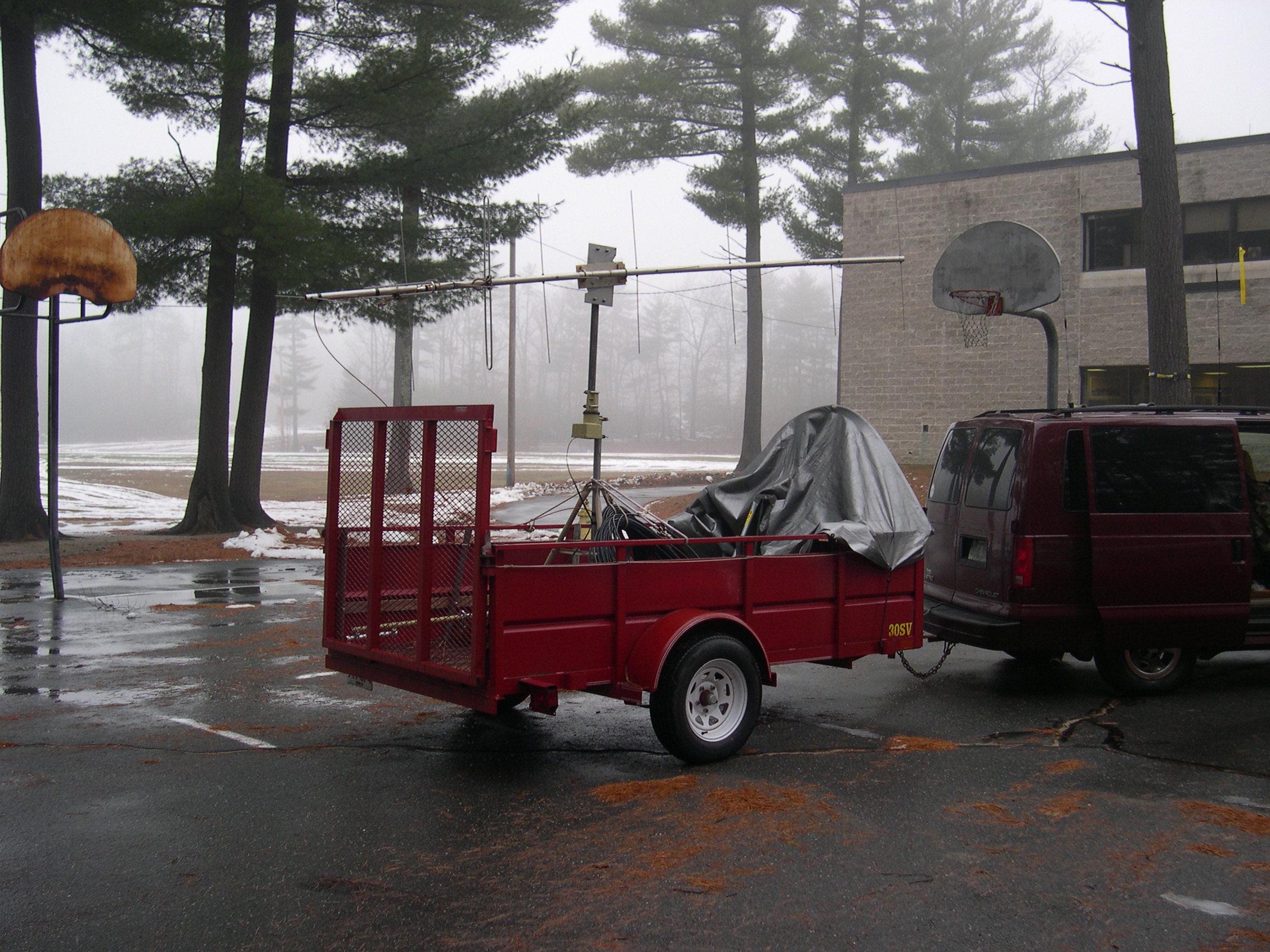 The secondary 14 element antenna and rotator mounted on a wheeled base.