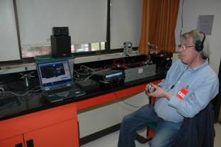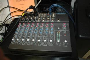Without notice on the day of the event the audio requirements expanded to providing audio to two adjacent classrooms. The challenge was to provide uplink and downlink audio to the adjacent rooms without creating feedback in the middle room where the students were asking their questions. The middle room would only have downlink audio so the students could hear the astronaut’s replies. With the help of audio equipment supplied by the music teacher Larry supplied signal to the new systems.