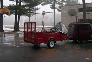 The Monday afternoon before the contact the two stations and the main antenna system were set up. Participating were Joel W1JMM, Stan KD1LE, Bob W1XP, Larry KB1ESR, and Gary K1YTS. We planned on four or more people to set up and an equal number or more on the next day for the final setup and contact.