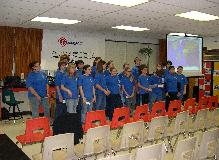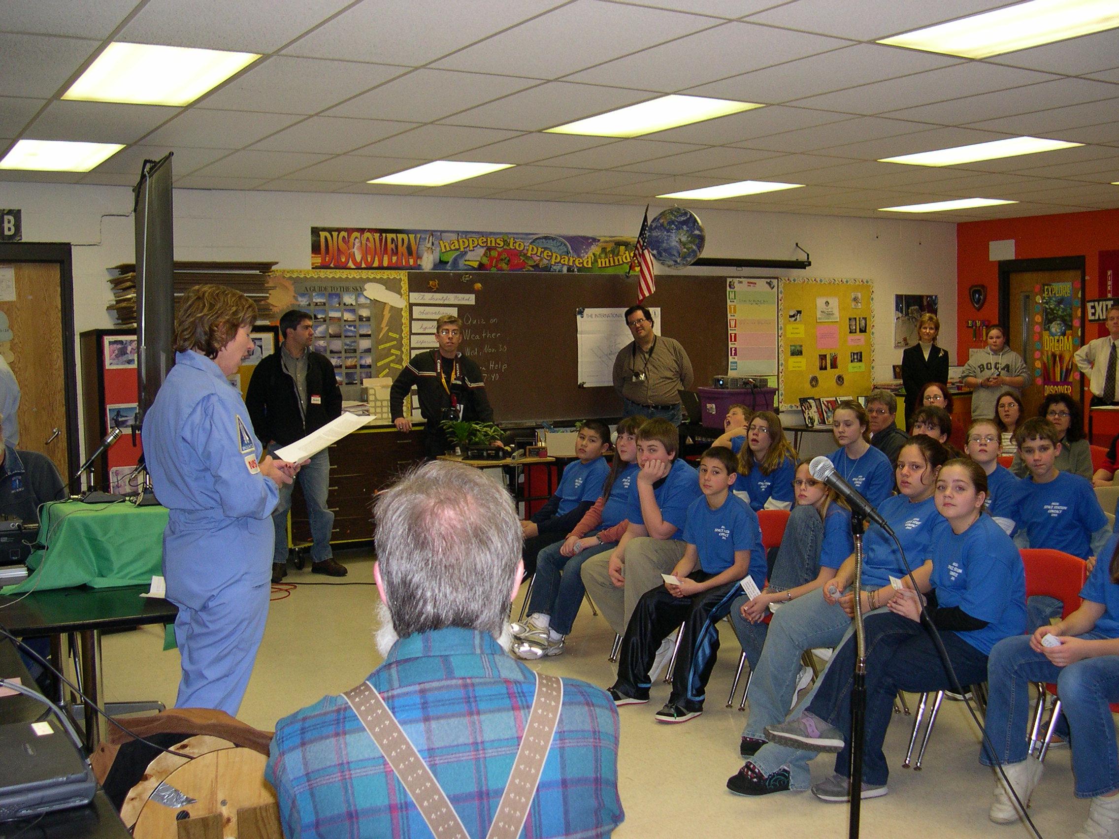 The 20 students grades 6 to 8 who were chosen to ask questions.
