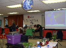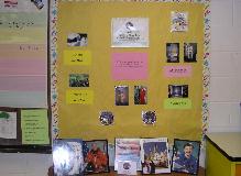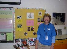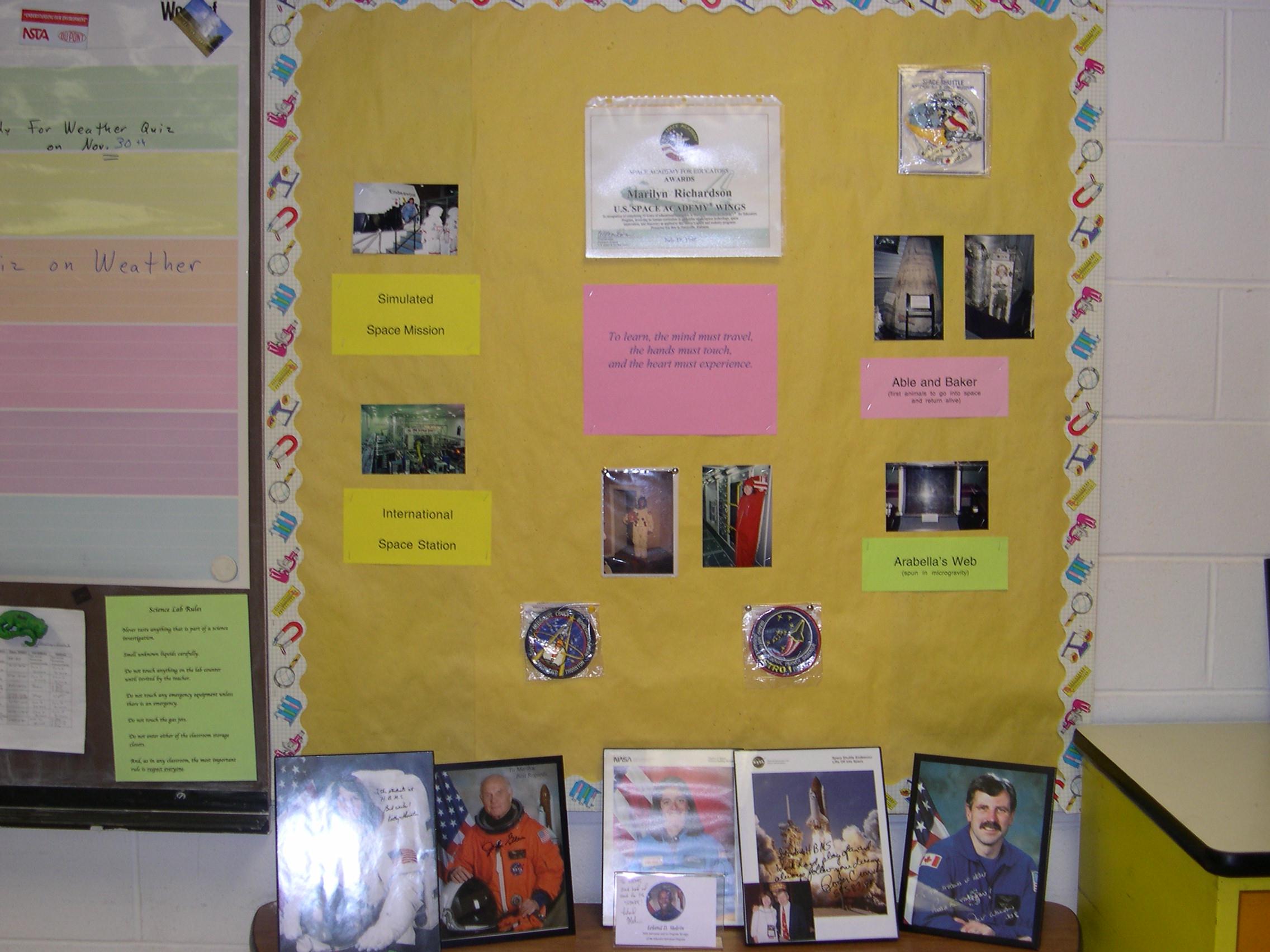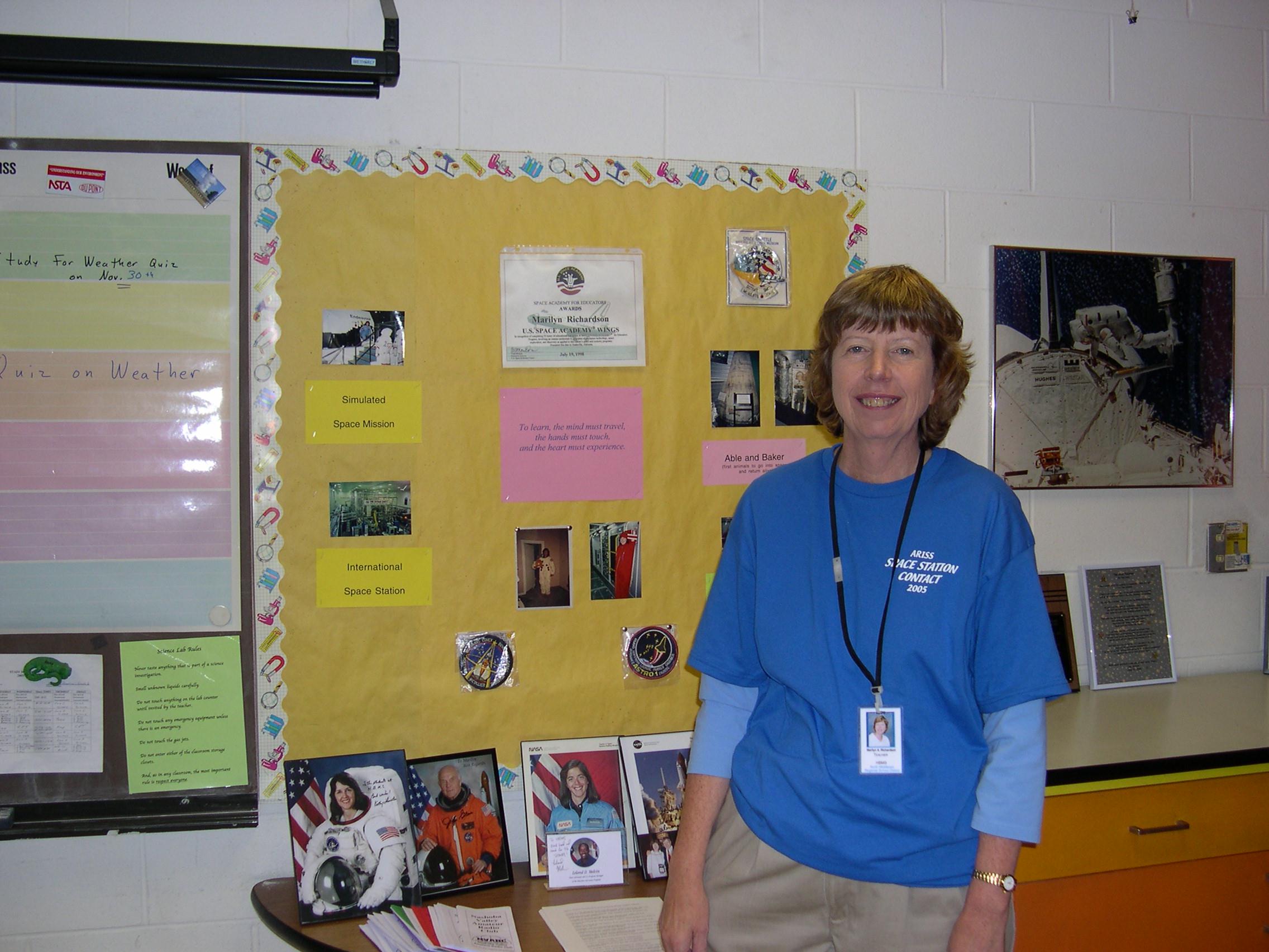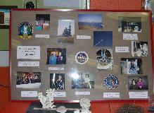 Marilyn in front of mementos from the NASA space camp that she attended.