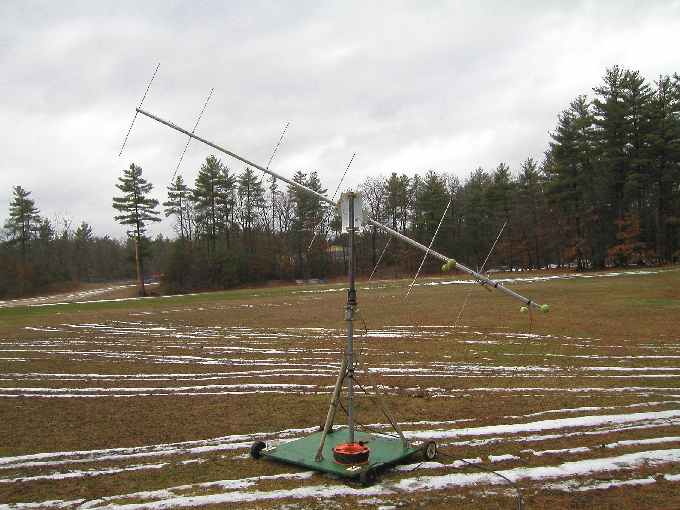 The secondary 14 element antenna and rotator mounted on a wheeled base.