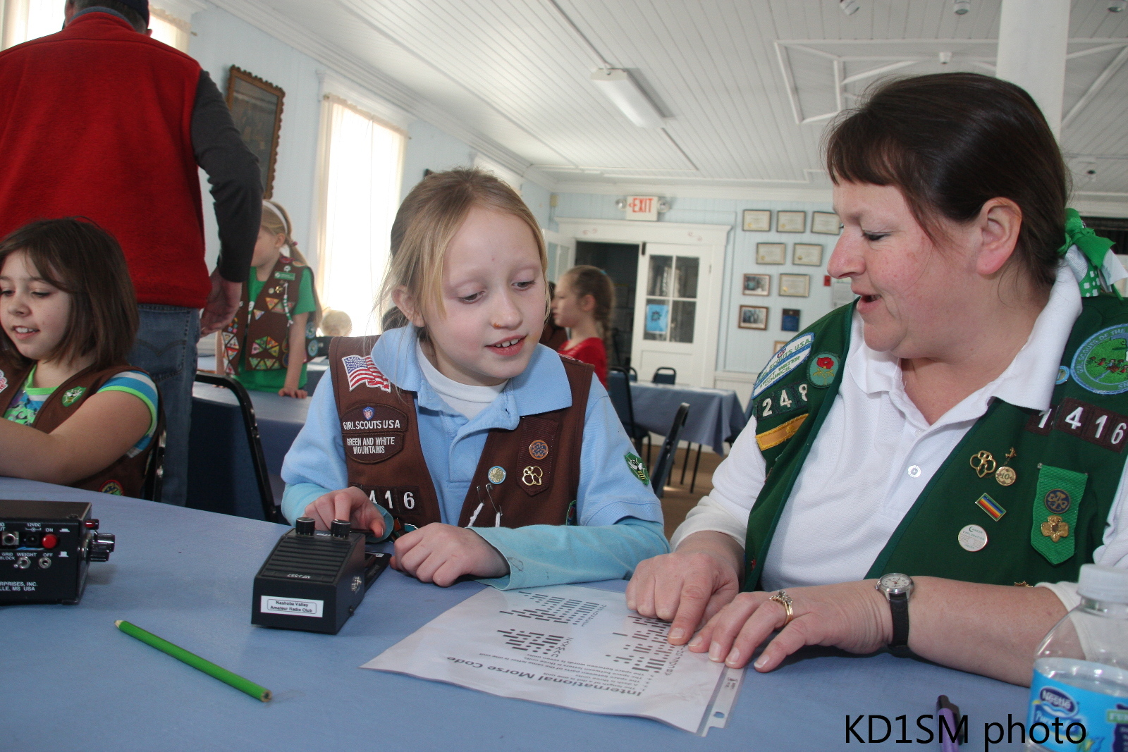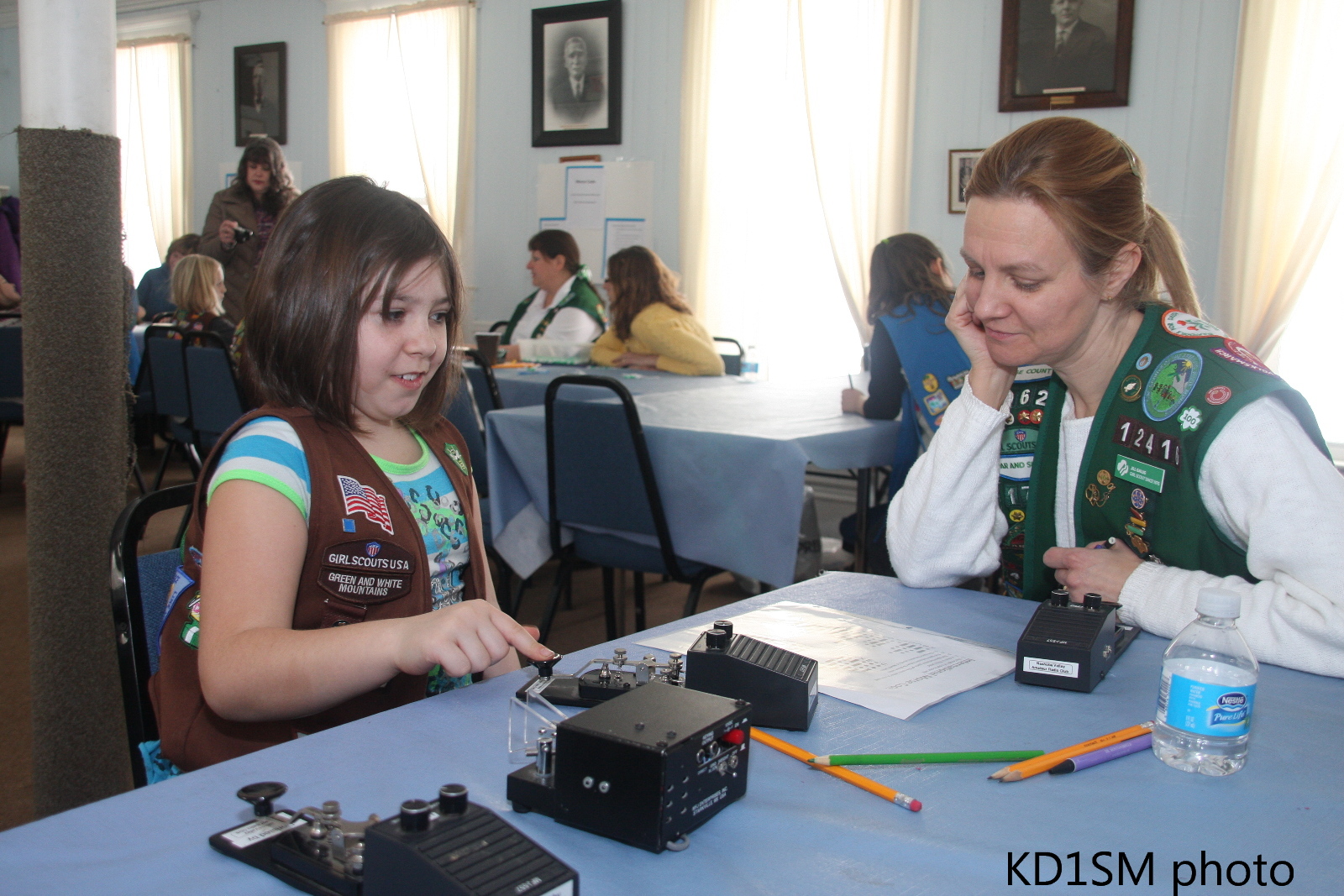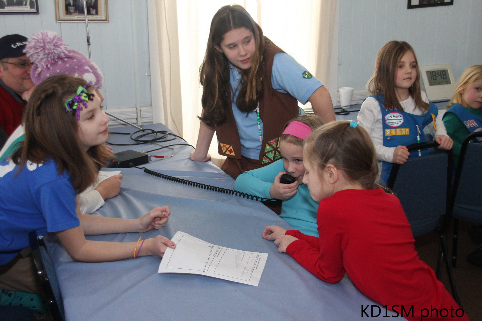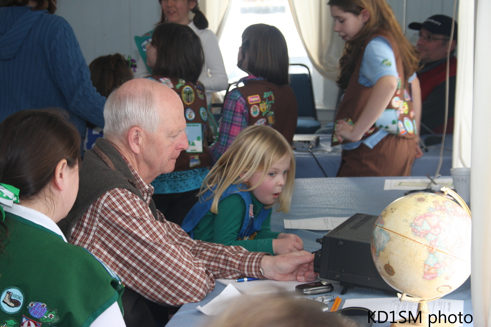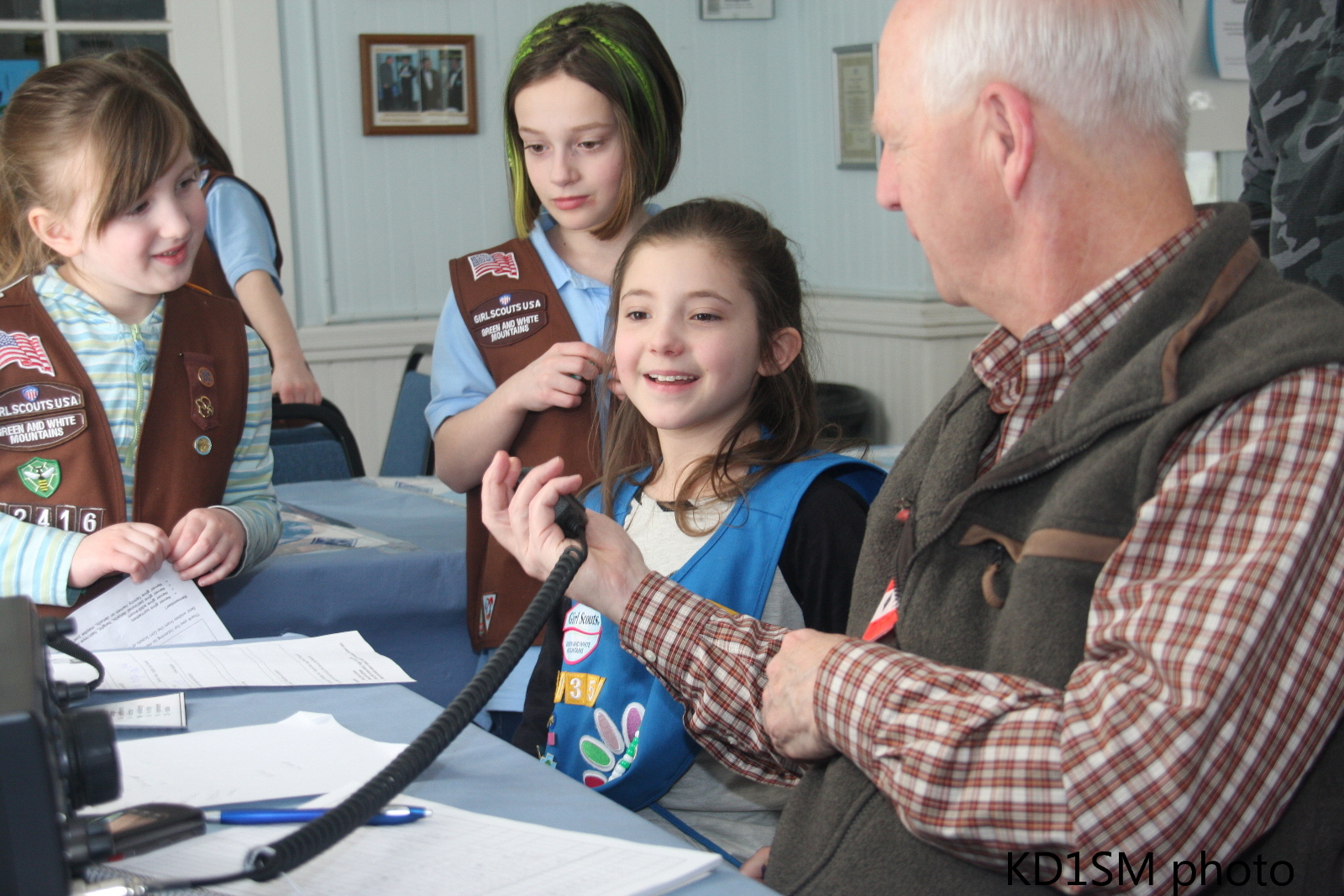 On 21 February 2015 NVARC members Skip Youngberg K1NKR, Stan Pozerski KD1LE, Greg Cote KB1WAQ, and Ralph Swick KD1SM set up an HF and VHF Amateur Radio station at the Masonic Hall in Raymond New Hampshire for four troops of Girl Scouts to participate in a Thinking Day On The Air. Photos by KD1SM.