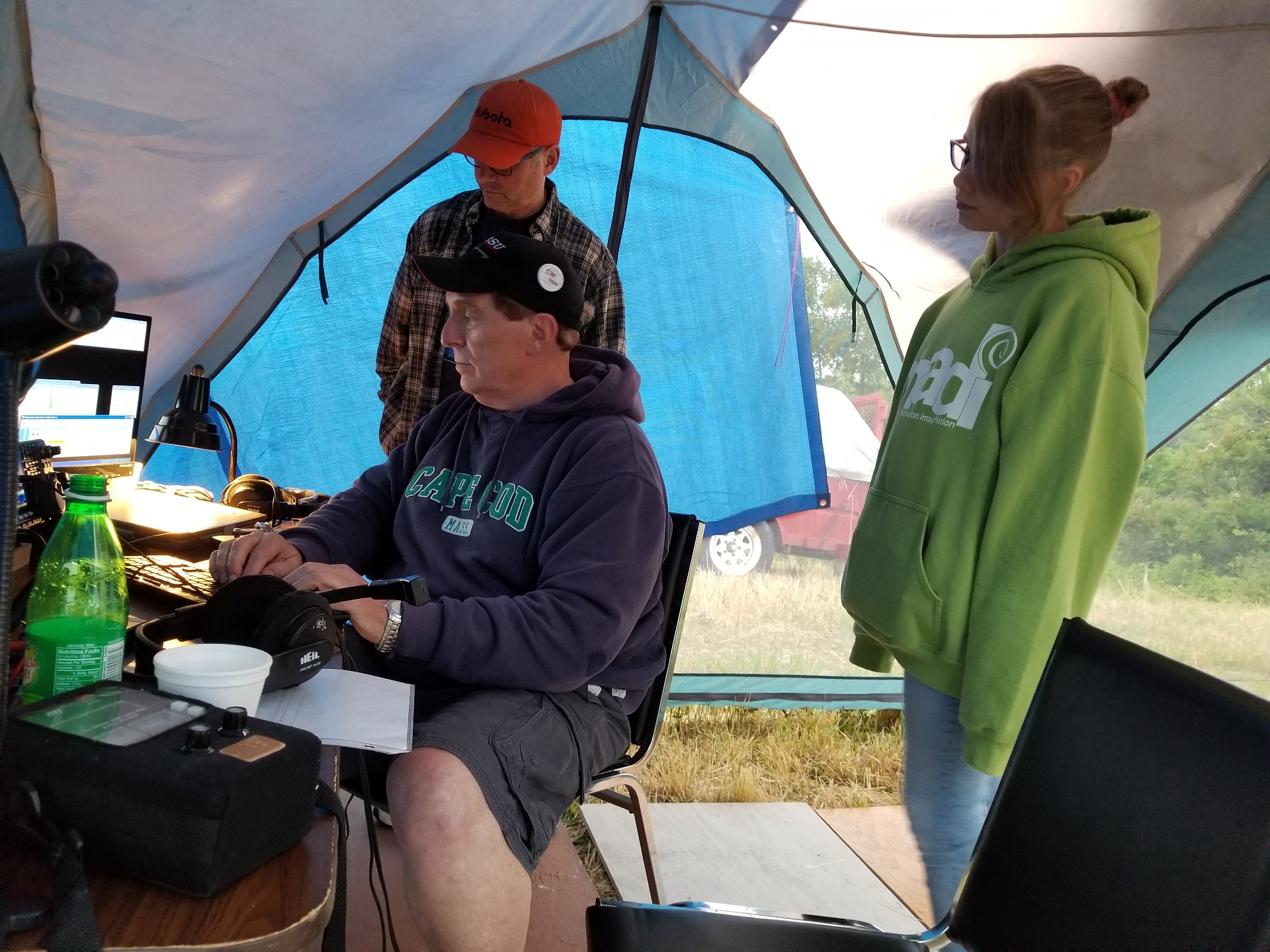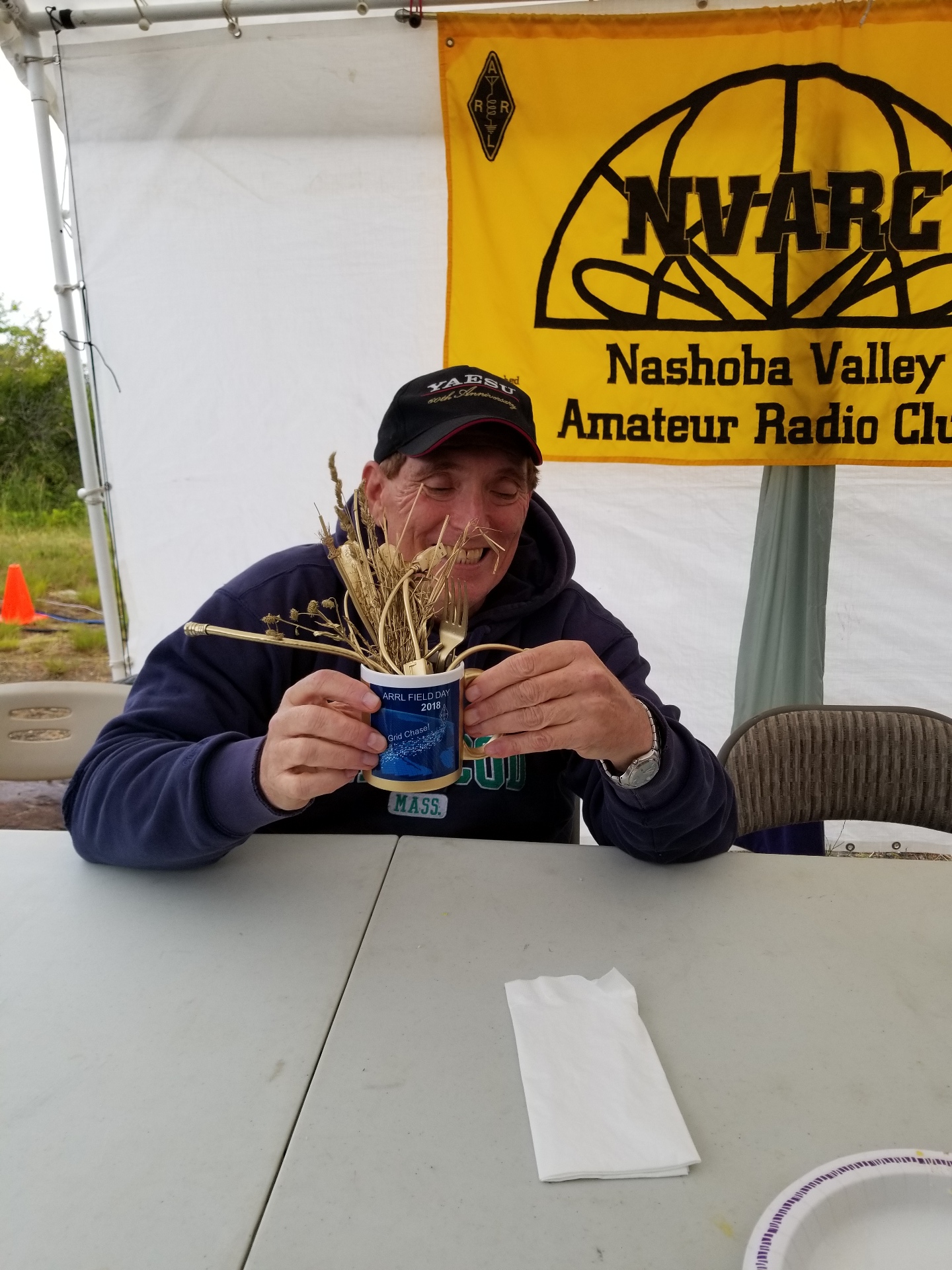 ARRL Field Day 2018 23-24 June. NVARC members ran Field Day from the Heald Street conservation area in Pepperell, MA. We ran class 2 Alpha with a third VHF station. Though it rained briefly just after setup on Saturday, the weather cleared and we were pleased to have many visitors, especially our young operator Sarah.
