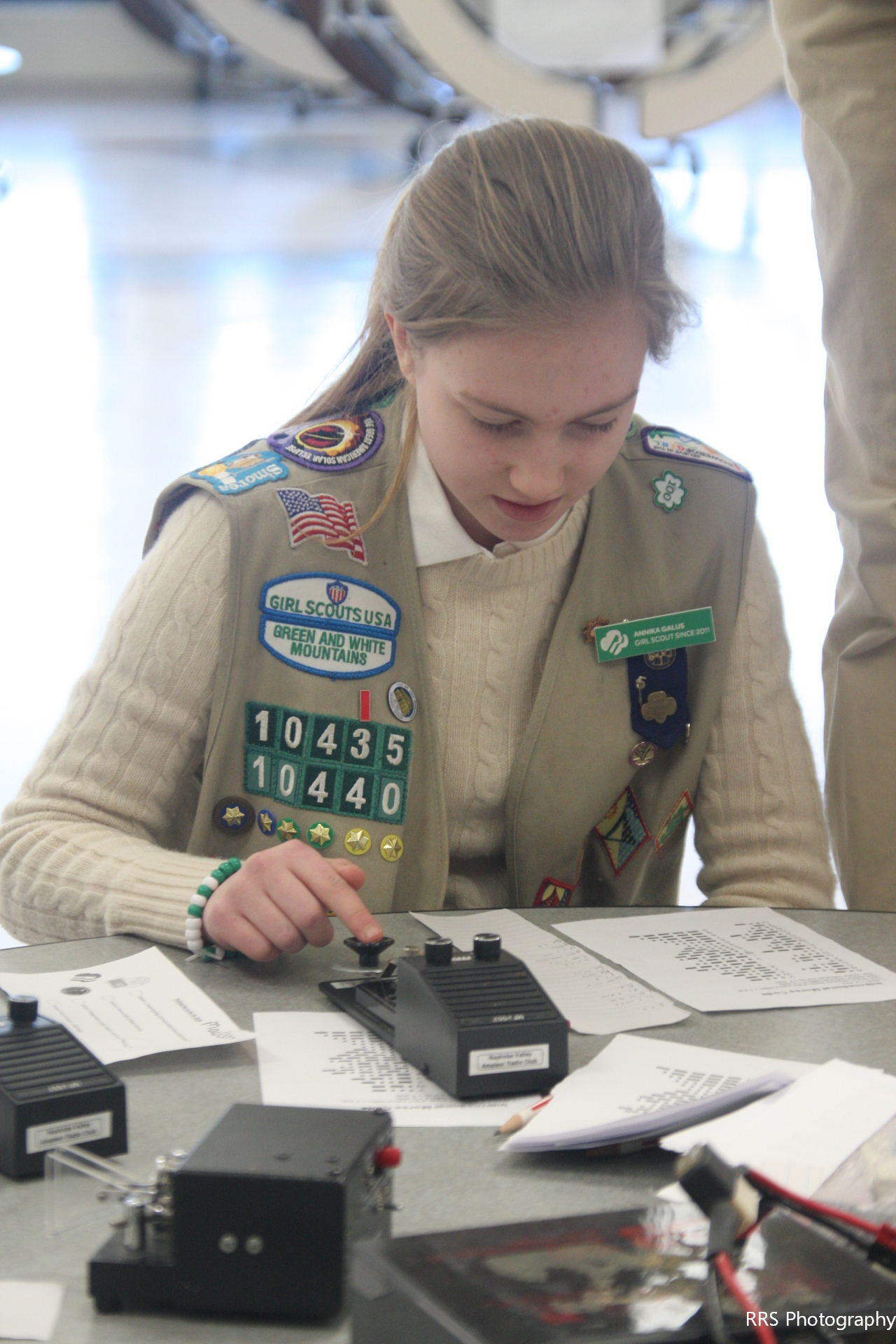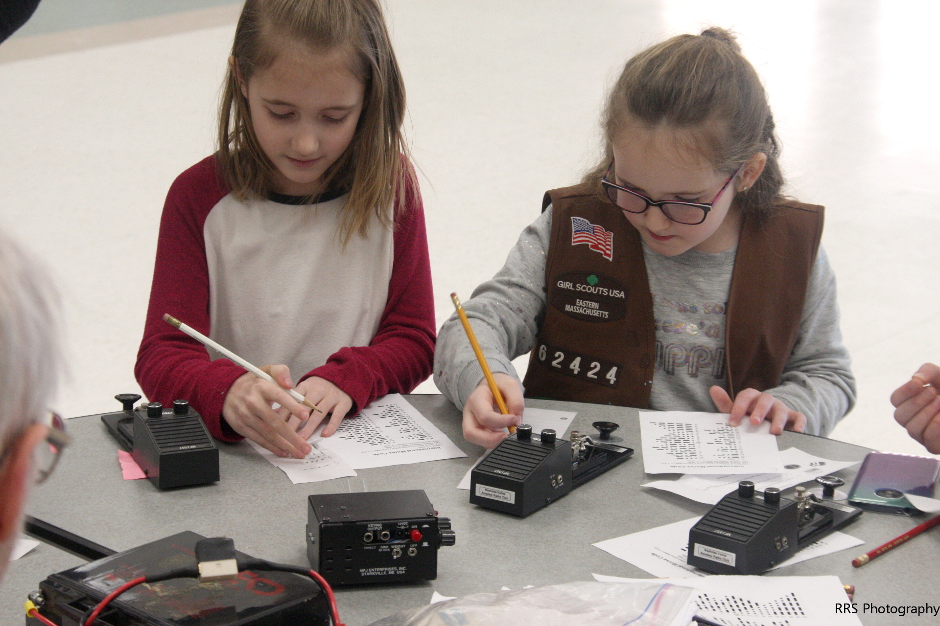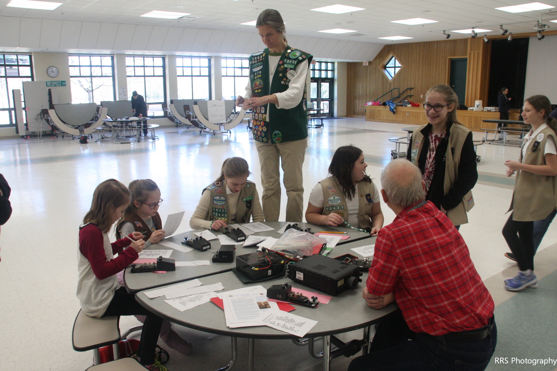 On 9 February 2019 NVARC members set up stations for HF Amateur Radio, CW (Morse Code) practice, phonetic alphabet, and world timezones for Girl Scouts in the Tewksbury Massachusetts area to experience a Thinking Day On The Air. Photos by KD1SM.