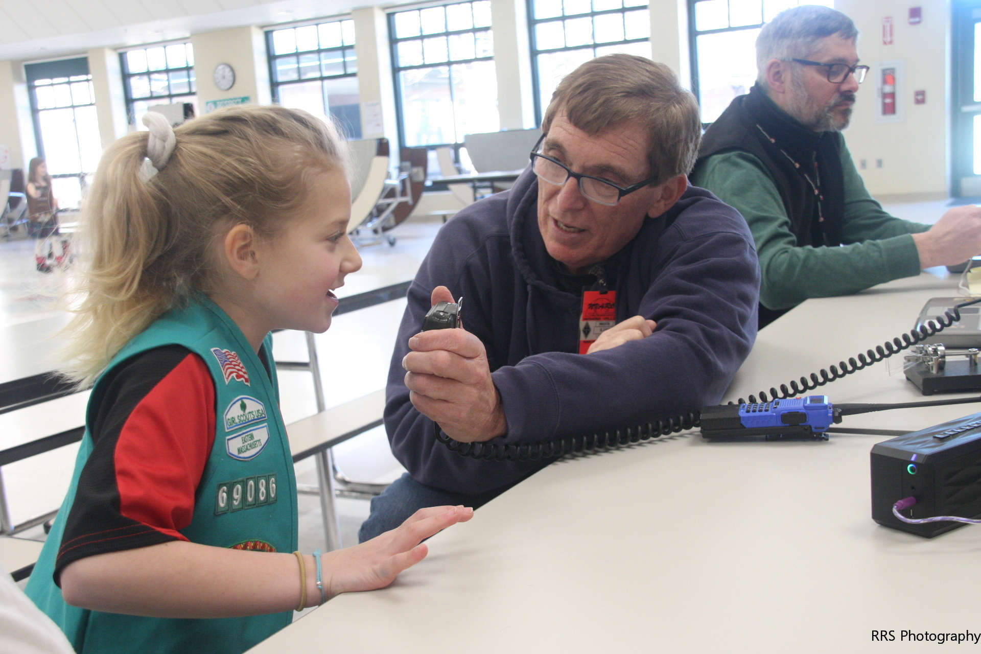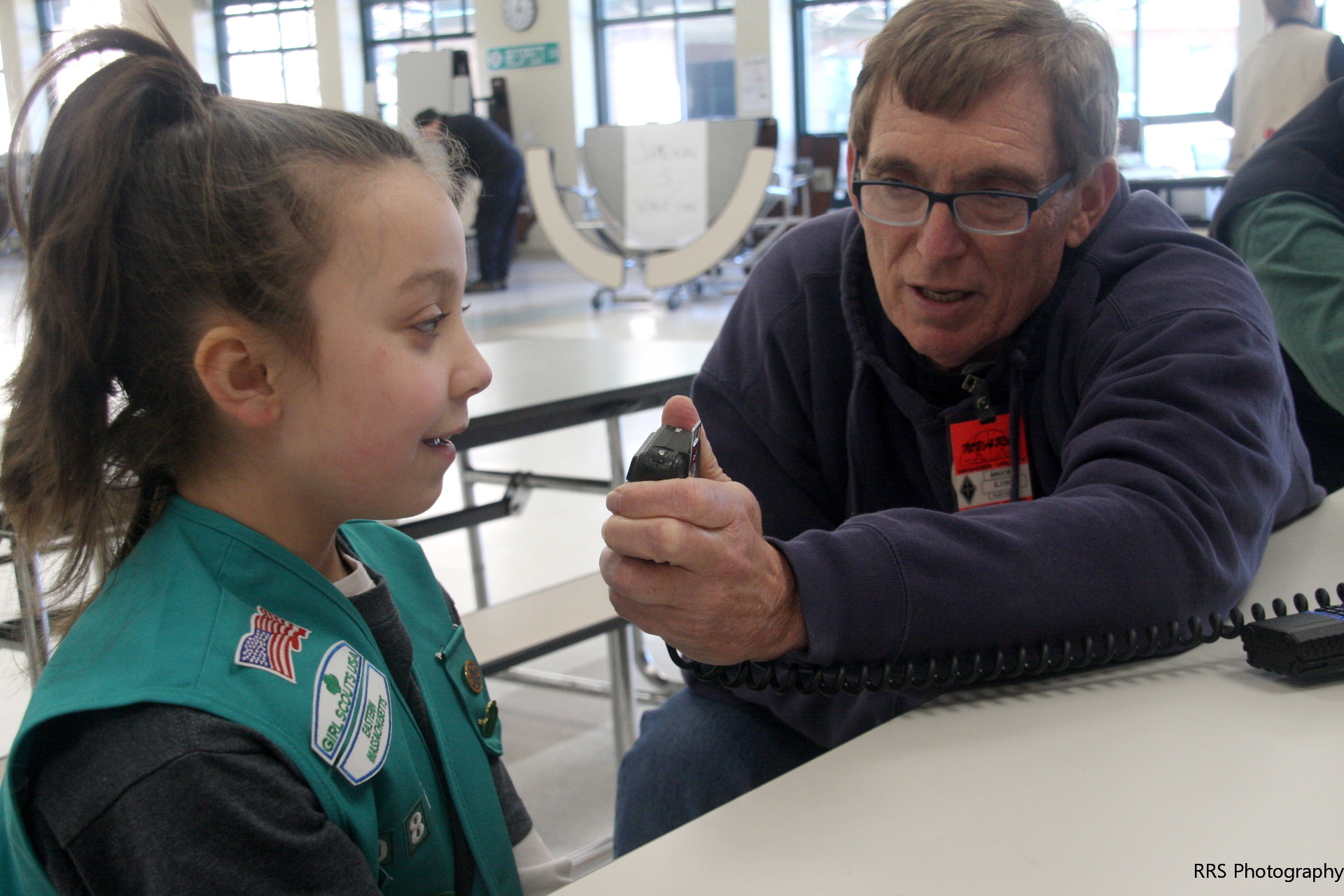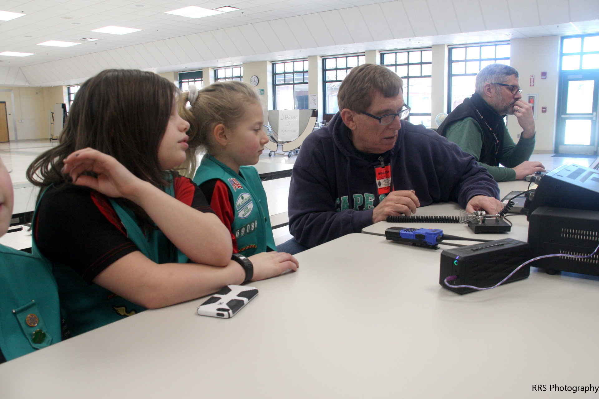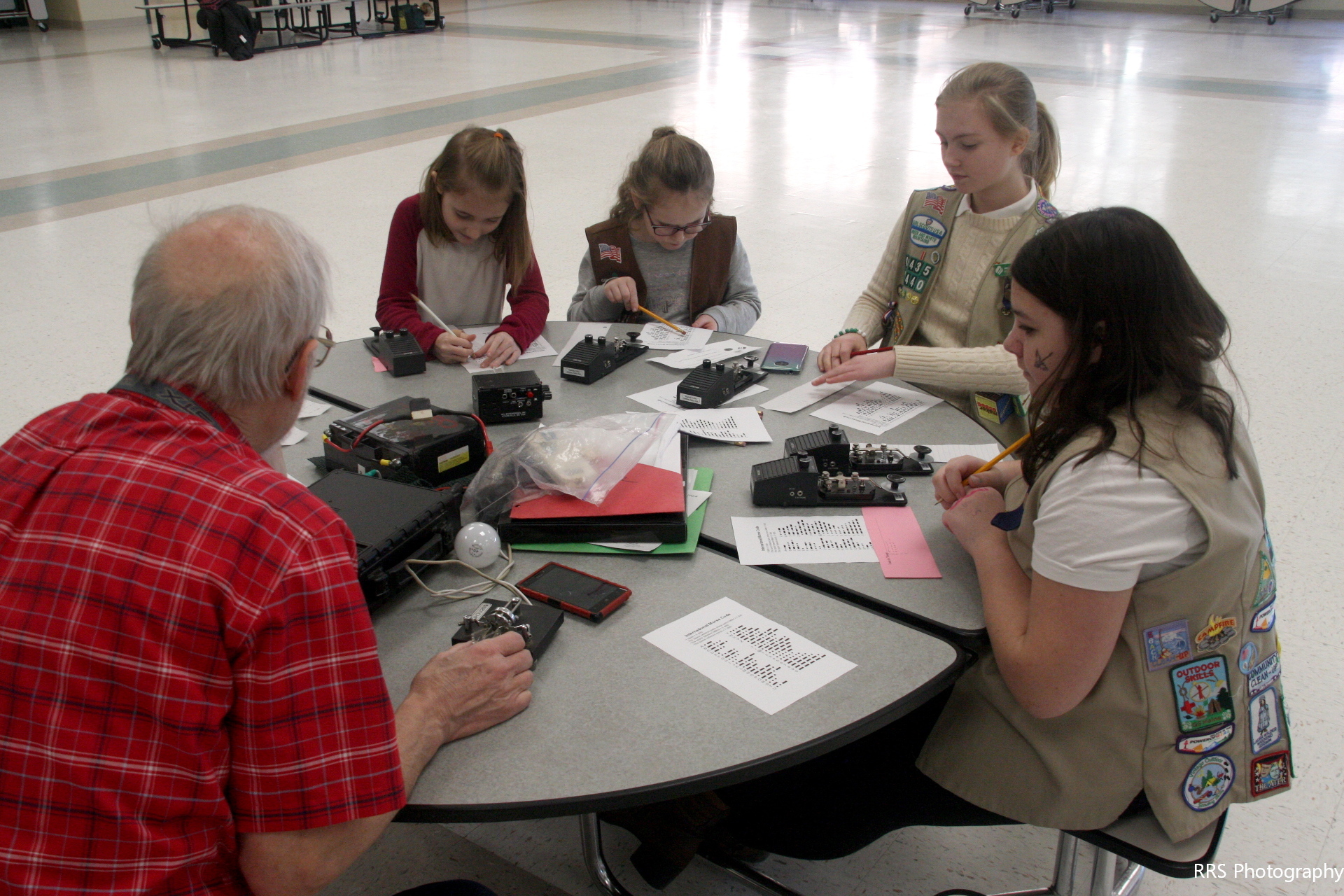 On 9 February 2019 NVARC members set up stations for HF Amateur Radio, CW (Morse Code) practice, phonetic alphabet, and world timezones for Girl Scouts in the Tewksbury Massachusetts area to experience a Thinking Day On The Air. Photos by KD1SM.